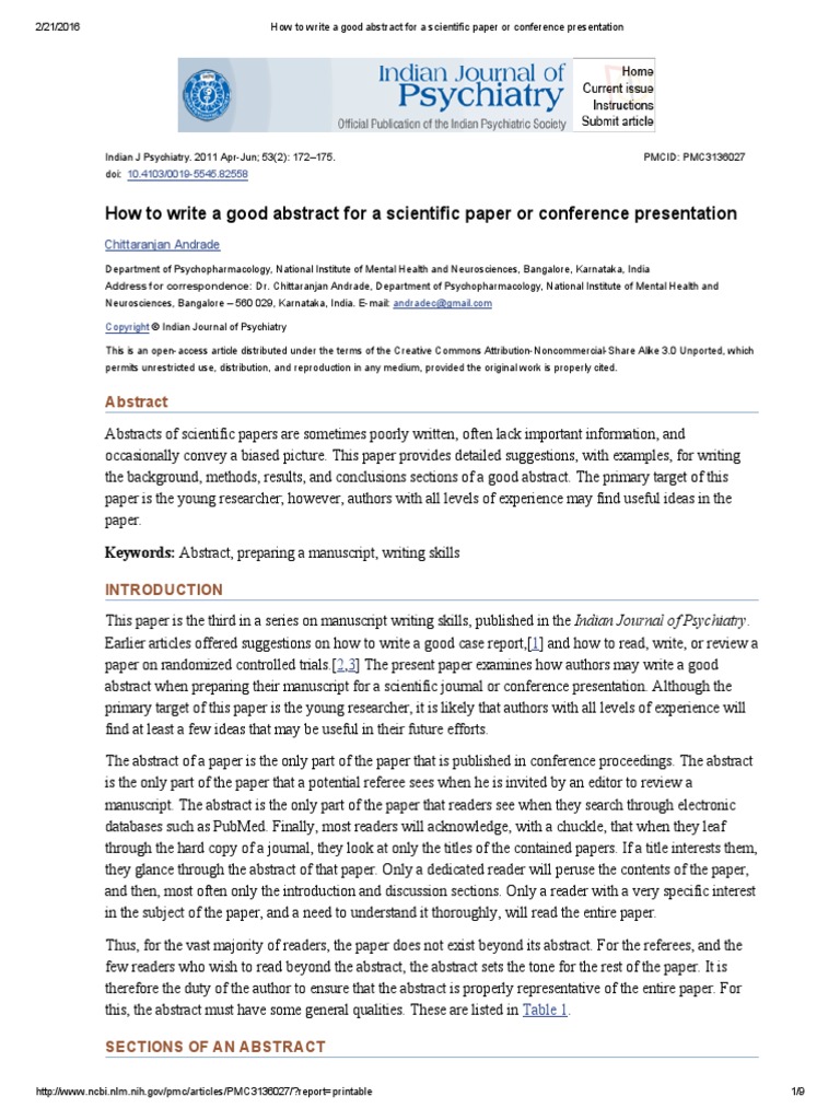 Examples Of Science Paper Abstract - Towards Threaded Publications Helping To Set The Scientific Record Straight On Medicine : Do not assume too much or too little background with the topic.. The abstract also gives the readers a gist. Original sample abstract for a project. Notice that the running title of the paper and the page number are at the header of the page. Examples of science paper abstract. People use the abstract to decide whether to read the rest of the paper, so the abstract for such a paper is important.